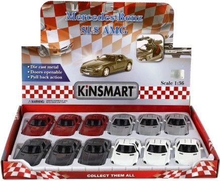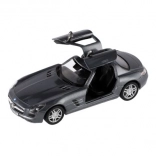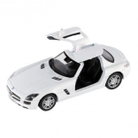 Aduceți un colț de lux acasă cu acest minunat model auto Mercedes-Benz SLS AMG. Datorită scării 1:36, vehiculul este detaliat, iar aspectul său realist și ușile care se deschid îmbunătățesc experiența de joacă. Este realizat din materiale de calitate - combinând metalul și plasticul pentru o durată lungă de viață.