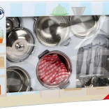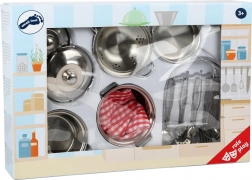 Mic set de vase metalice de la Small Foot este completarea ideală pentru bucătăria de jucărie a copiilor. Acest set bogat conține piese individuale, cum ar fi tigăi, oale și alte vase care permit copiilor să se joace de-a bucătarii.