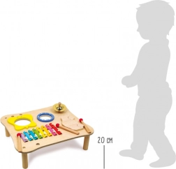 Descoperiți bucuria muzicii cu această măsuță muzicală din lemn, realizată cu atenție la calitate. Copiii își dezvoltă prin joacă ritmul, auzul și motricitatea fină. Măsuța are picioare înșurubabile stabile din lemn de fag și oferă o lume variată de sunete pentru primele experimente muzicale. Ideală pentru micii muzicieni de la 3 ani. Dezvoltarea motricității, susținerea ritmului și a auzului, materiale de calitate.