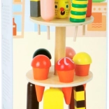 Invită copiii în propria lor cofetărie! Acest suport robust din lemn, pe trei niveluri, expune clar până la 15 bucăți de înghețată și pe stick și transformă fiecare joc într-o aventură dulce. Susține jocul de rol, dezvoltă imaginația și motricitatea fină și, datorită execuției de calitate din lemn masiv și placaj, rezistă entuziasmului zilnic al celor mici.