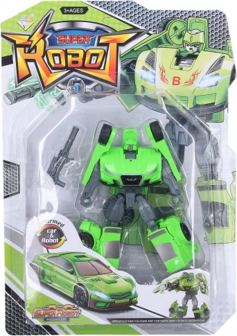 Autorobot amuzant de 14 cm, care se transformă în câteva clipe din mașină în robot și înapoi. Oferă articulații mobile, roți libere pentru rulare lină, armă ca accesoriu și patru culori puternice – verde, albastru, galben și portocaliu. O alegere excelentă pentru copiii care iubesc jucăriile transformabile și jocurile de acțiune.