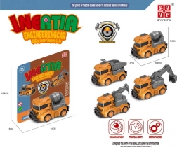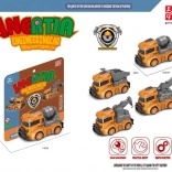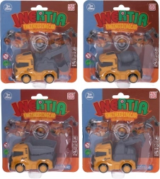 Mașina de construcții compactă cu mecanism inerțial îi va încânta pe micii constructori prin aspectul realist și manevrarea ușoară. Oferă patru variante îndrăgite – basculantă, betonieră, macara și excavator. Datorită dimensiunilor de 8,5 × 5 × 5,5 cm se potrivește perfect în mâna copilului și este ideală pentru joacă acasă sau în călătorii.