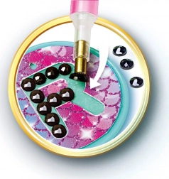 Totul este gândit pentru creație ușoară: șnururi elastice pentru înșirare comodă, stilou cu capăt de ceară pentru aplicarea precisă a pietricelelor și inele metalice rezistente pentru prinderea pandantivelor. Excelent pentru dezvoltarea motricității fine, creativității și simțului culorilor.