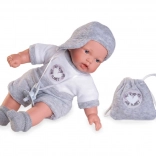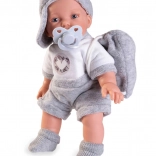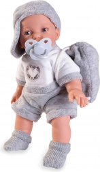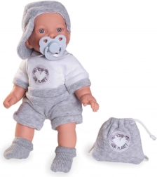 Această păpușă vorbitoare este realizată manual în conformitate cu standarde ecologice ridicate. La apăsarea burticii, păpușa spune „mama”, „tata” și emite sunetul realist al unui copil care râde.