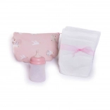 Pachetul include un biberon reîncărcabil și două scutece de unică folosință – tot ce au nevoie copiii pentru joaca de hrănire și schimbat.