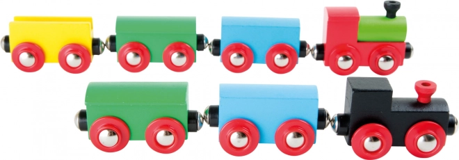 Setul include locomotive colorate, vagoane și alte accesorii care aduc jocului vitalitate și ajută la dezvoltarea imaginației copiilor.