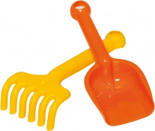 - Include o lopățică și o greblă colorată.