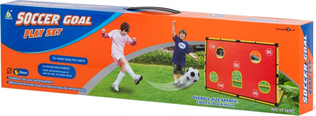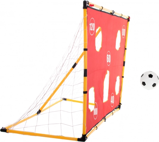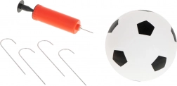 - Set complet – poartă, plasă, prelată cu ținte, minge și pompiță în pachet.