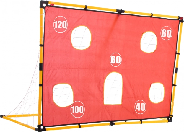 Această poartă mare de fotbal cu prelată țintă transformă fiecare antrenament într-o provocare distractivă. Orificiile numerotate de pe prelată motivează la îmbunătățirea preciziei și permit organizarea de concursuri fără nevoie de portar. Poarta este ușoară, stabilă și potrivită pentru grădină, terenuri și interioare mai spațioase.