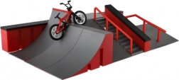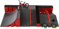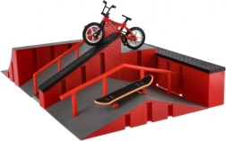 - Set complet: rampă, scări cu bară (rail), skateboard pentru degete și mini bicicletă BMX