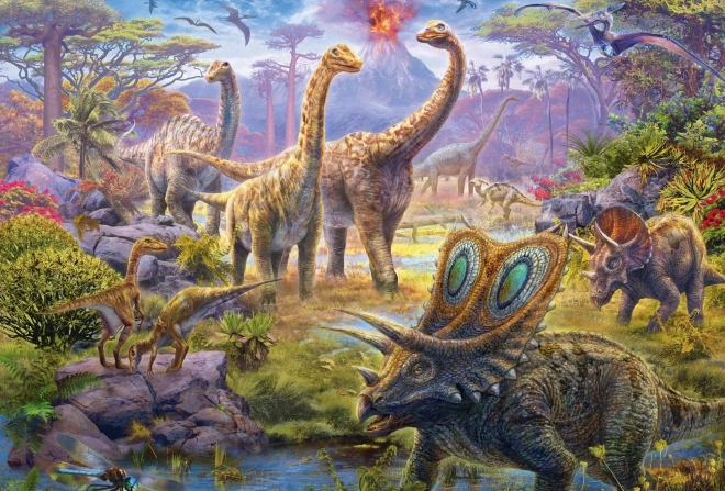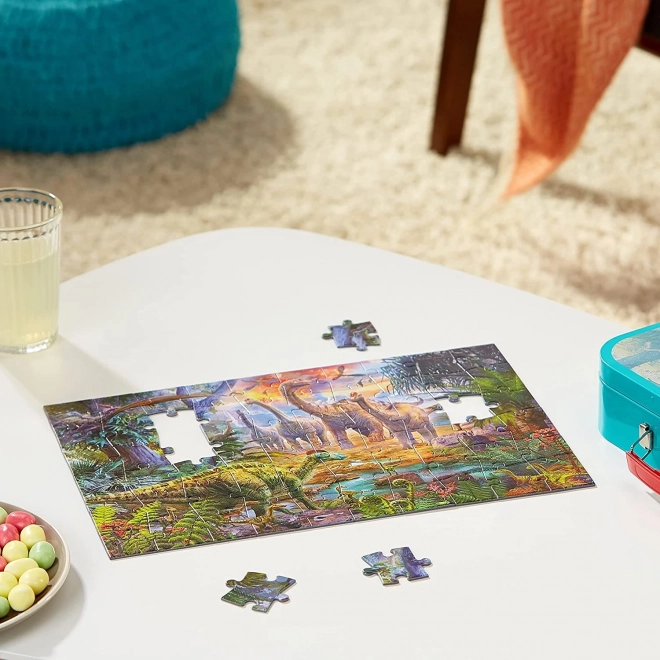 Fiecare puzzle oferă un alt scenariu din lumea preistorică, diferite tipuri de dinozauri fiind reprezentate în ilustrații detaliate.