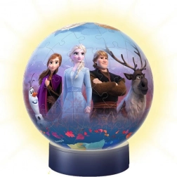 Descoperă magia cu Ravensburger 3D Puzzle Ball® Regatul de Gheață 2, care se aprinde la o bătaie din palme. Datorită preciziei perfecte a celor 72 de piese din plastic, vei crea o sferă solidă fără a fi nevoie de lipici. Piesele curbate special asigură potrivirea perfectă și stabilitatea sferei după asamblare.