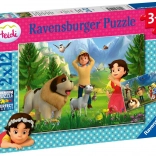 RAVENSBURGER Puzzle Heidi: Timp petrecut împreună la munte 2x12 piese