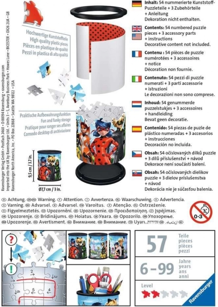 Descoperă magia puzzle-urilor 3D de la Ravensburger, care se asamblează ușor datorită pieselor speciale curbate. Acestea asigură o construcție stabilă fără a fi nevoie de lipici. După asamblare, suportul servește nu doar ca loc pentru creioane, ci și ca spațiu de depozitare pentru cosmetice sau alte mărunțișuri în camera copilului.